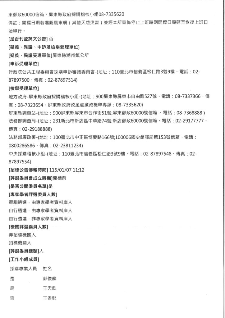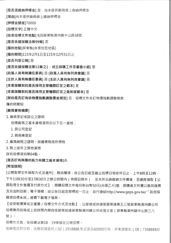 潮州鎮公所辦理採購標案,案號:115-01-13;名稱:「115年度里、鄰長環境教育研習暨文康活動」勞務採購