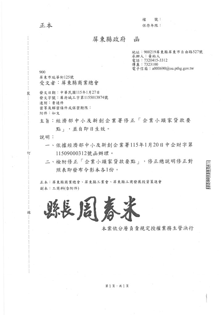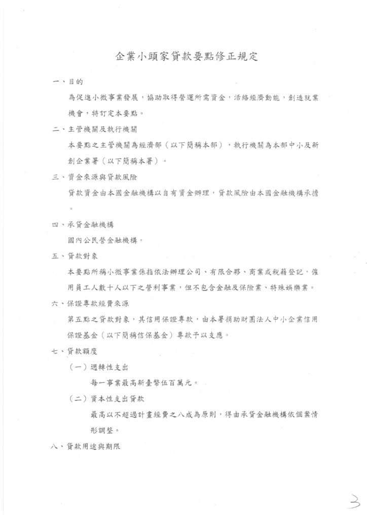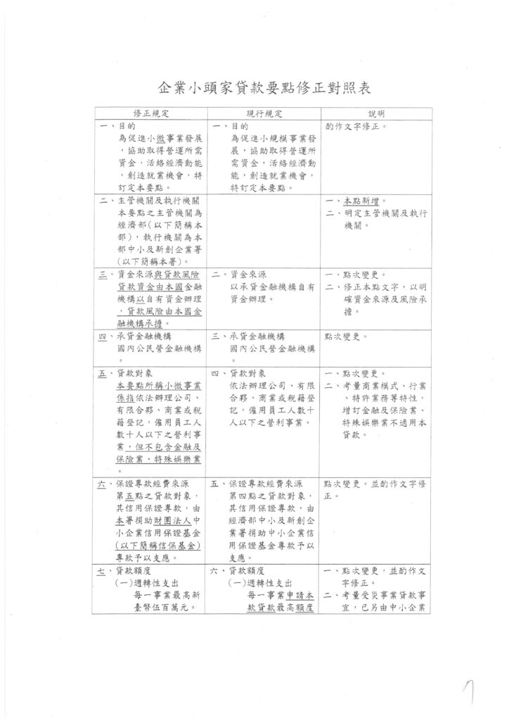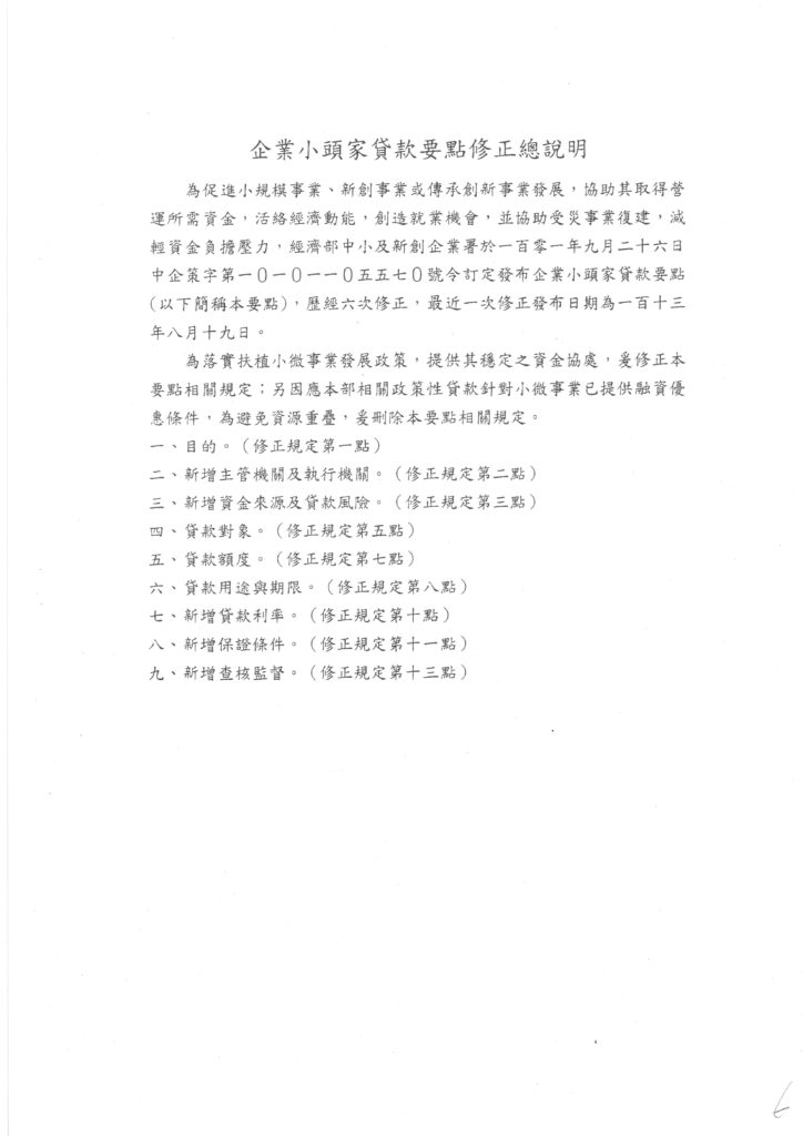 經濟部中小及新創企業署修正「企業小頭家貸款要點」,並自即日生效。