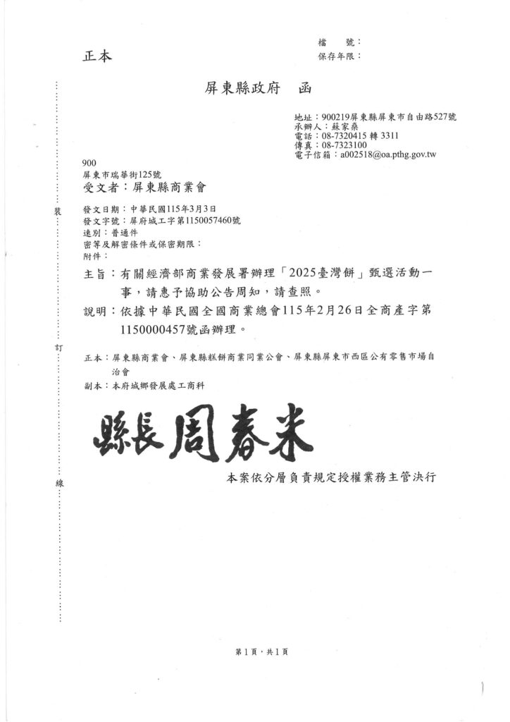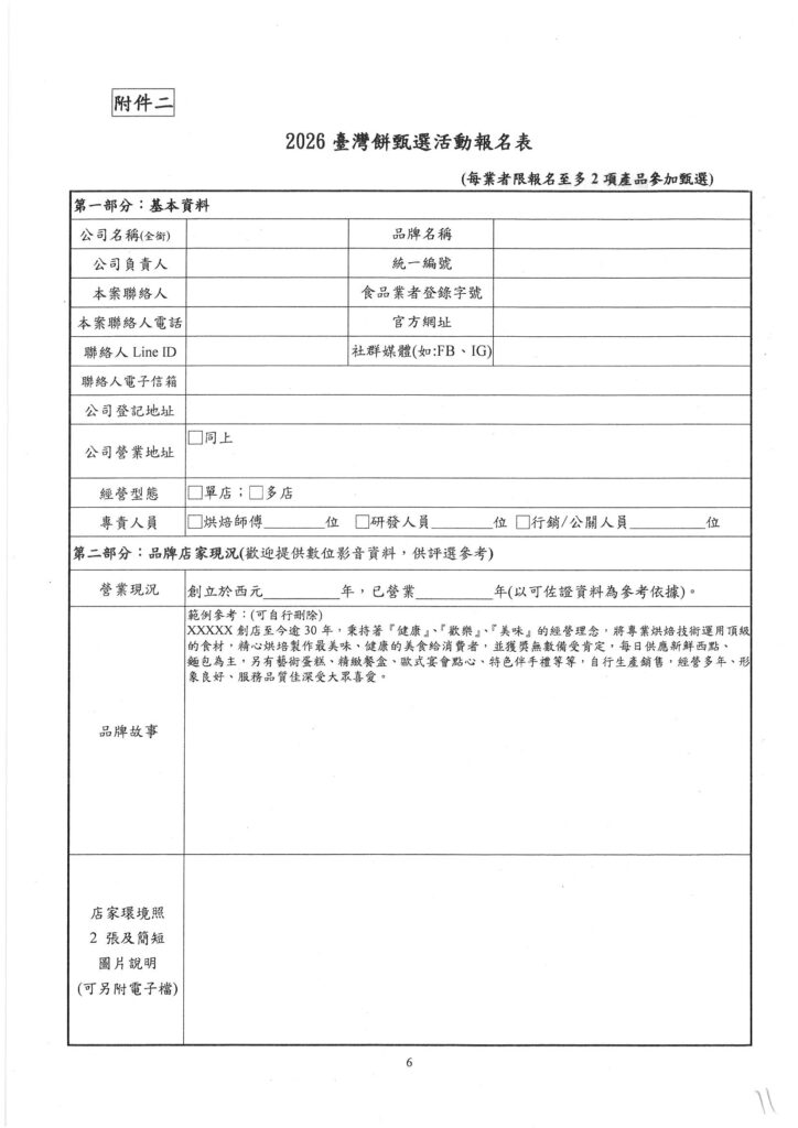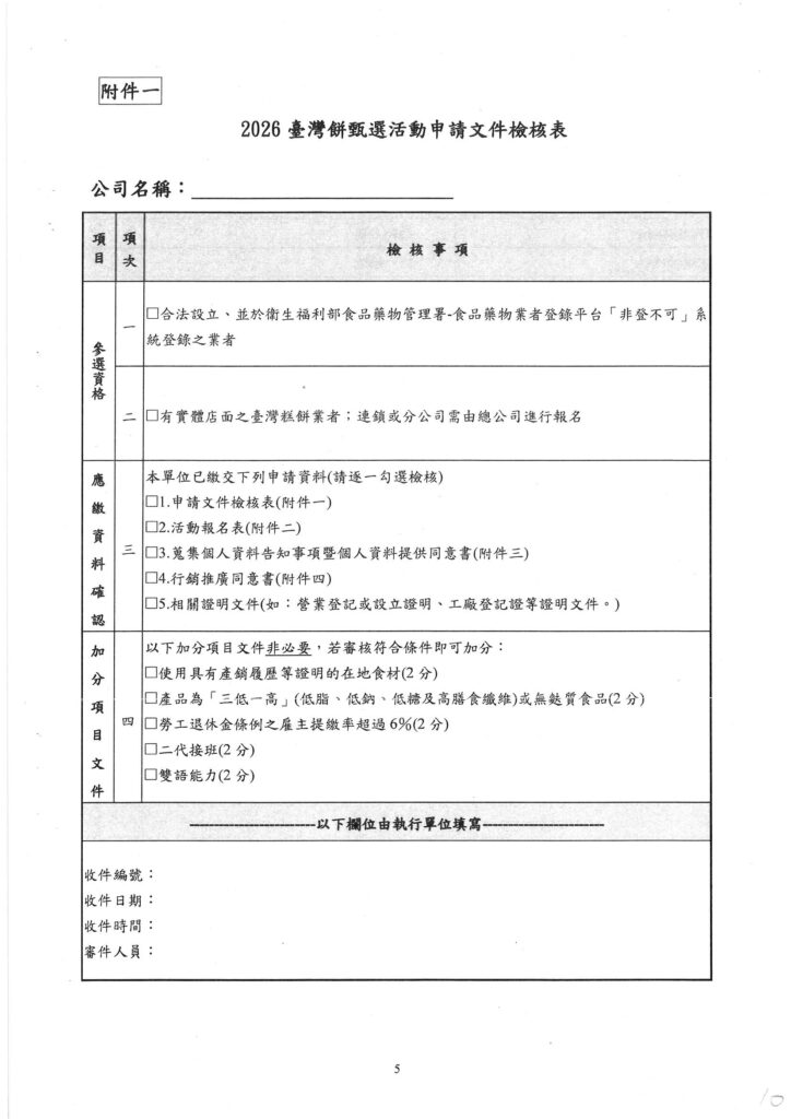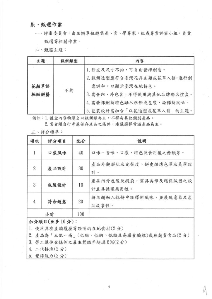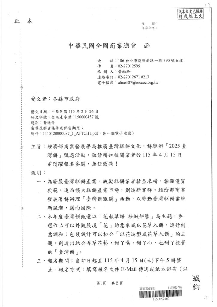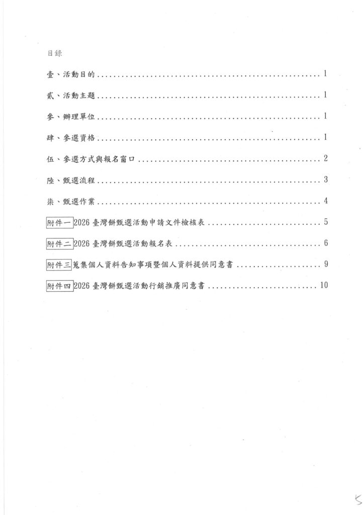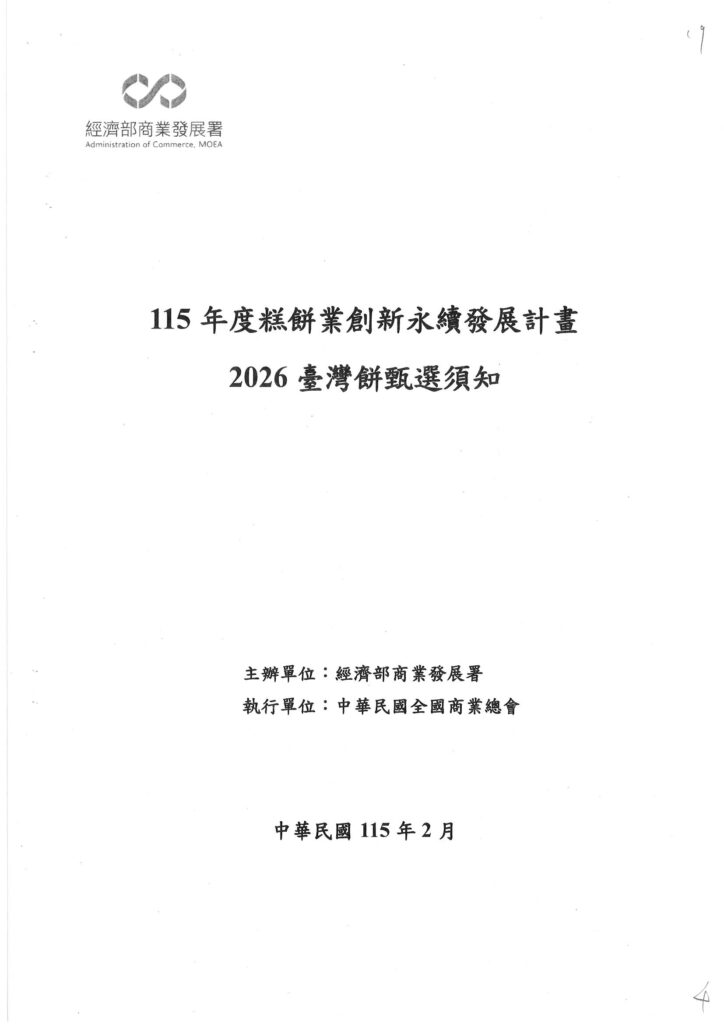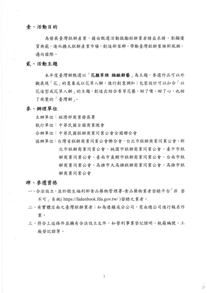 一、經濟部商業發展署為發展臺灣糕餅產業,特辦理「臺灣餅徵選活動」以帶動台灣糕餅業維新風潮,邁向國際。